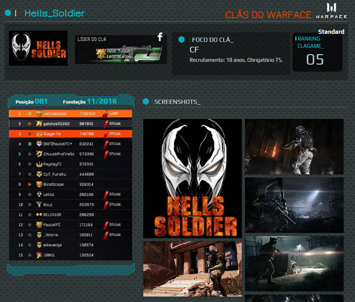 O foco do clã é CF. Quem quiser ser recrutado adicione a líder do clã no Facebook e fale com ela.